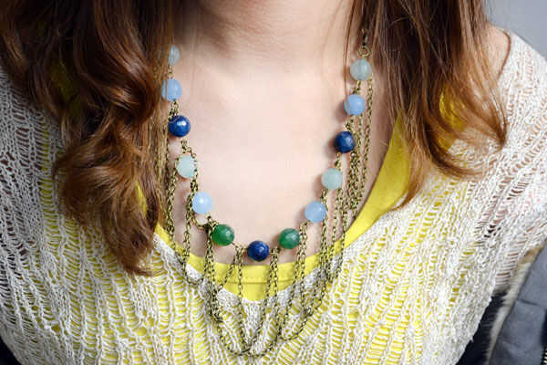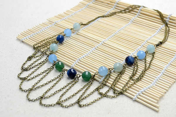 ¡ Felicidades!!!!!! Este diseño de collar de perla y cadena sólo hizo uso de dos tipos de cadena común y una variedad de cuentas de Jade de colores cálidos, pero definitivamente ha hecho un comunicado y agrega textura y movimiento a tus looks! Espero que te gusta mi collar de cadena bronce!