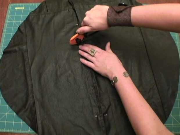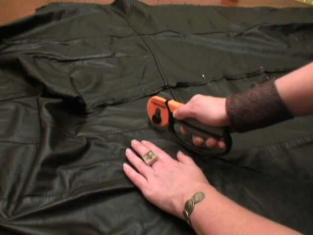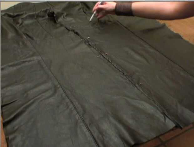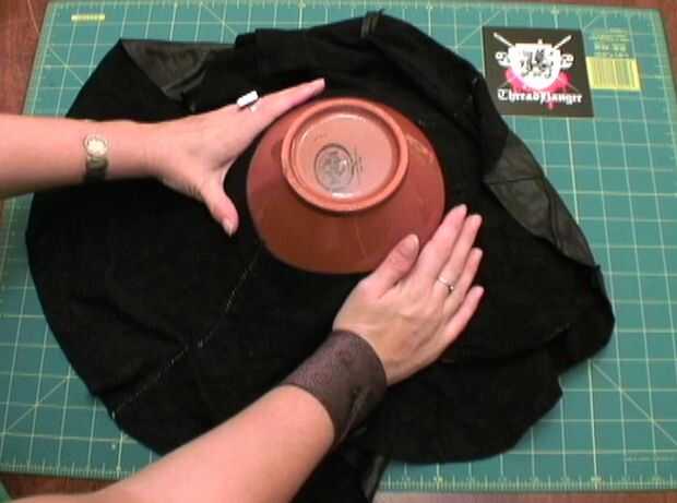 Con su hilo dental y sus agujas de cuero, coser la costura fijada de la forma Donut.