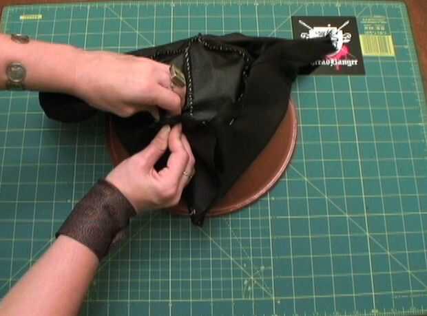 Después de prender a los tres lados, hay un montón de piel extra colgando en la parte posterior del sombrero, tan pasador esas áreas también. Metí mucho con el estilo de mi sombrero, tomó un montón de clavos y pruebas de lo que se veía bien. ¡ Mira el video, usted verá lo que quiero decir.