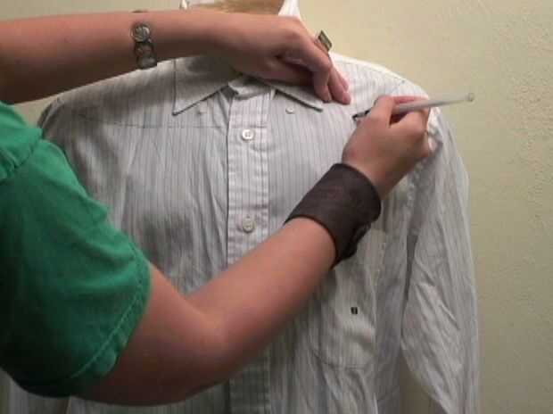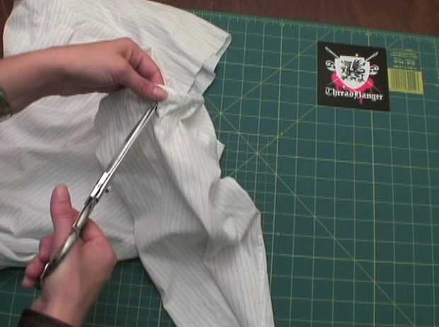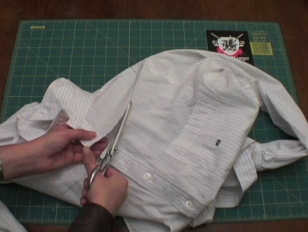 Llevar la camisa fuera de la forma del cuerpo y corte la parte superior de su camisa siguiendo la línea.