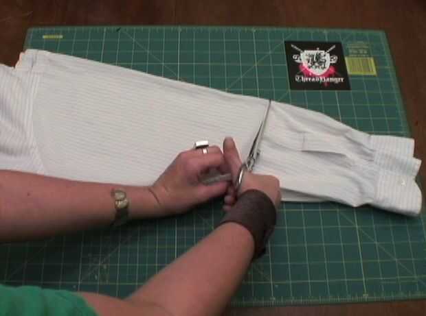 A continuación cortar la parte inferior de las mangas, en sobre la longitud de tres cuartos.