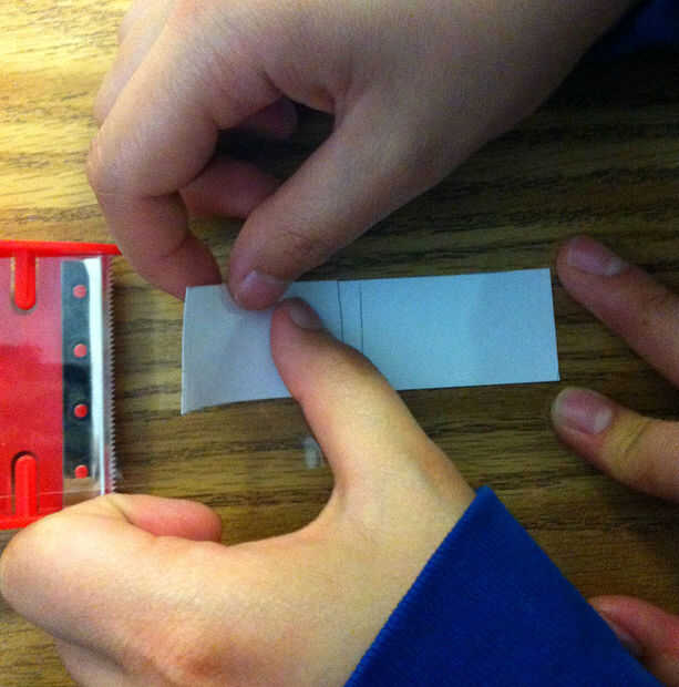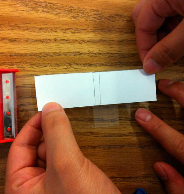 5. doble el papel de la cartulina a lo largo de las líneas que hiciste en el papel.