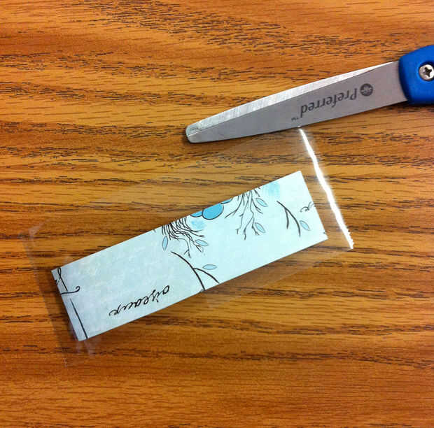 4. Corte la cinta extra colgando de los lados del papel de cartulina.