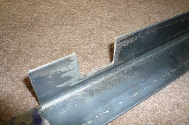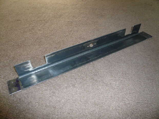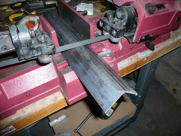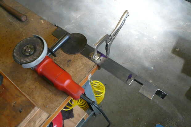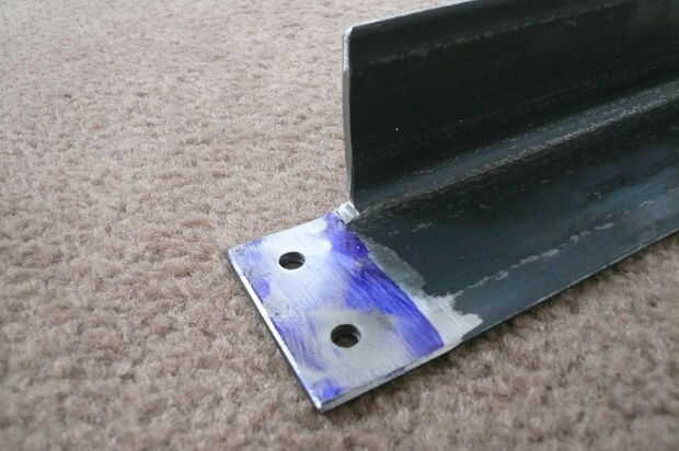 Esta parte se hace de 2 "x 1/8" valores de ángulo de acero grueso. El corte se hicieron salidas en ambos extremos con mi sierra en posición vertical. Utilicé un disco de papel de lija en mi amoladora angular para conseguir un acabado suave después del corte. Marqué todos los agujeros con el escriba y la escuadra de combinación. Sofocar la parte bien durante la perforación de 5/8 agujero en el centro, sólo una medida de seguridad.