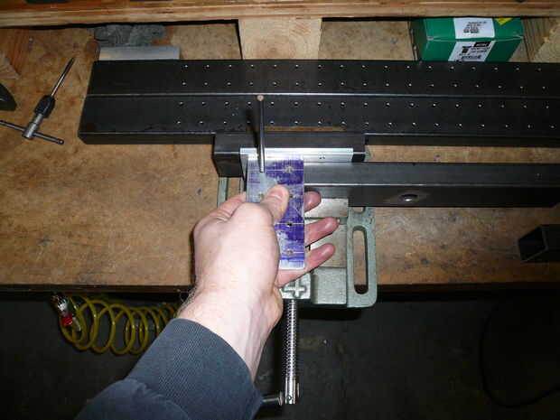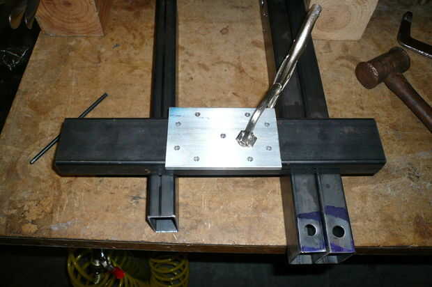 Utilizar las plantillas que hiciste para el plat de montaje de pórtico y paso a paso para localizar y transferir la placa de montaje de su taladro. A continuación, mantenga la perforación y roscado.