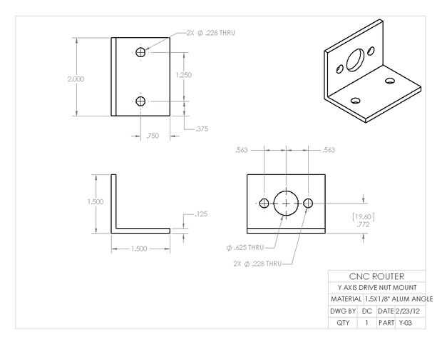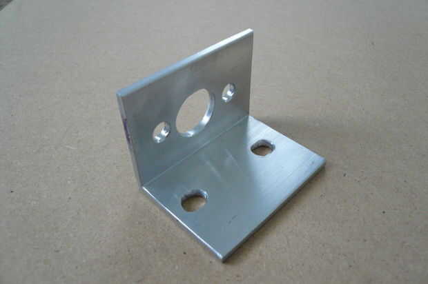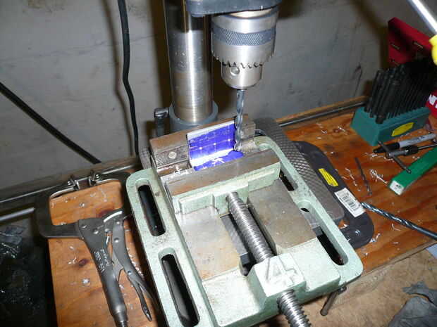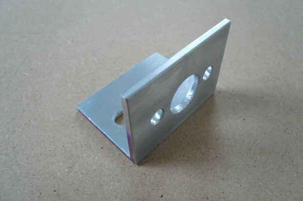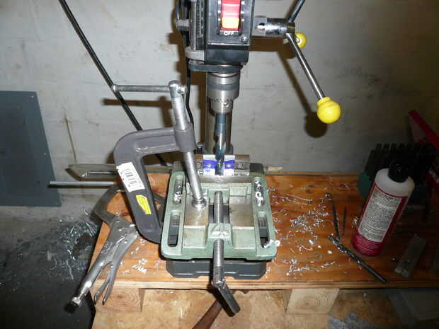Esta parte se hace de la acción de ángulo de aluminio de espesor de 1,5 "x 1/8". Marque todos los agujeros utilizando la Plaza Escribano y combinación. Coloqué esta parte en un vicio cuando taladre los orificios. Para la seguridad Sujete la parte bien cuando taladre el agujero de 5/8". Esto es una broca grande para mi pequeño taladro y probablemente fue spinning ayunar incluso a la velocidad más lenta. Esto causó mucha vibración que puede conducir al desastre a toda prisa. Tenga cuidado al taladrar con brocas grandes de banco Prensas del taladro superior.