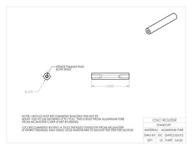 Mcmaster carr parte #91780A063 este enfrentamiento utiliza tornillos 10-32 por lo que necesita nosotros en lugar de M5, pero los tornillos 10-32 son baratos porque son más comunes.  Hecho estos separadores, pero probablemente substituirá pronto con la parte de Mcmaster.  Hice una plantilla para sujetar el tubo con un tornillo que me permitió perforar los extremos con el taladro y la parte mientras escuchas.  Mis resultados no fueron los mejores pero cerca bastante, y por eso les recomiendo que compren a estas piezas.