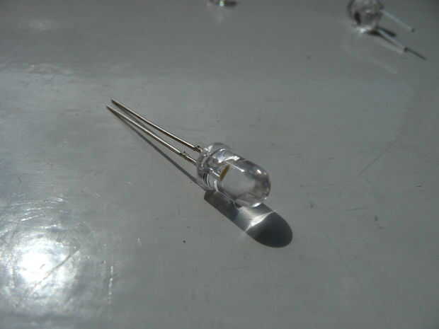 El LED Ultrabright de 8 mm "de luz". Este LED tiene un amplio ángulo de visión, y a diferencia de lo SuperFlux y 4.8mm dirigido, es muy luminoso. Es la perfecta para este proyecto. El único problema que tiene es que calienta rápidamente, pero eso no es un gran problema en este caso, ya que los LEDs se cuelgan en el aire. Elegí estos LEDs para la luz de pintura de cobre estilo LED.