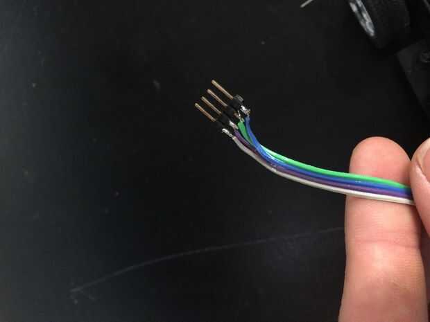 Una vez que ha hecho usted necesita obtener una longitud de cuerda de arco iris con cuatro alambres de 10cm o más y conectar un pin para cada cable. En el extremo opuesto necesita conectarse cuatro resistentes a cada cable otra vez y entonces que va soldado en la placa de circuito donde la IC fue. Deberás localizar el orificio hacia adelante, atrás, izquierdo y derecho en el circuito y que será donde se adjuntará resistentes a las. El otro extremo con los pines es cómo se conectará el Arduino al coche. También necesitas un cable que se conecta a la tierra en el tablero de circuito de coches que luego irá en uno de los motivos en el Arduino.