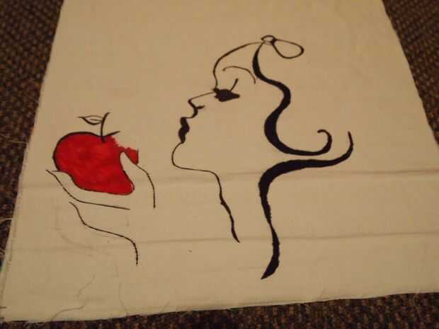 Después de haber cortado dos plazas de su tejido que coinciden, tomar un cuadrado y empezar a dibujar la imagen de Blancanieve en tu sharpie permanente. Te recomiendo describiendo un poco su dibujo con lápiz antes de salen aunque los marcadores. Mientras se dibuja regularmente paso hacia atrás para ver si empieza a parecerse a un extranjero, o si el va en la dirección correcta.