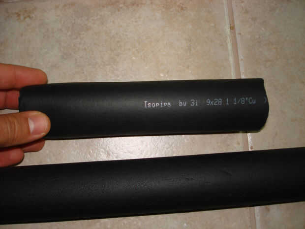 Espuma del aislamiento de la tubería es lo suave, generalmente negro, foamy, utilizado para aislar tuberías de cobre. Usted puede encontrar en cualquier ferretería y es relativamente barato. El uno que calcen bien mi barra.