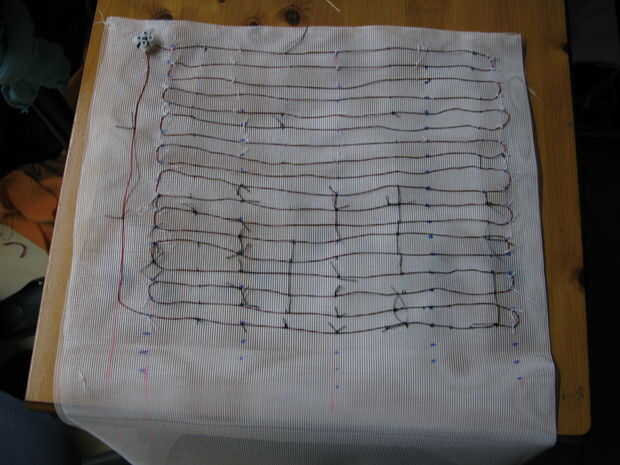 Me tomó alrededor de 1 hora para coser el cable, puede haber mejor manera de fijar el cable.