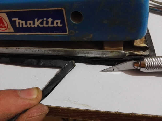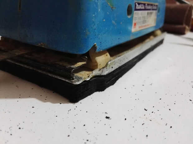 Después de esperar el pegamento se seque durante la noche, lo he probado y y el papel tenía desgaste casi similar en toda la chapa, parece mejor la arena, y la vibración es un poco el mismo o un poco menos.