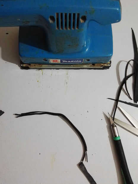 - El una herramienta rotatoria con un accesorio de lijadora de tambor se utiliza para recortar el exceso perfectamente a los contornos de la base.