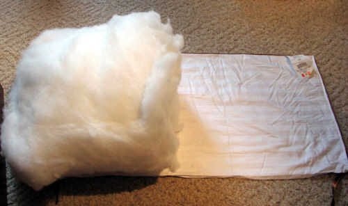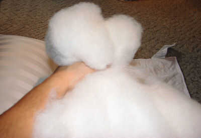 Me pareció más fácil de reunir uno de los extremos del relleno en una mano y empujar en lo posible. Una vez que se inició fue bastante fácil de empujar el resto del relleno en su lugar sin deformarla.