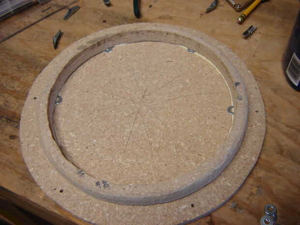 DIY kit de tambor de banda de Rock 8" acoplamiento cabezal Mod TutorialPaso 1: Corte el apoyo de 4 tambor de una pieza de paneles utilizando el controlador de batería como una plantilla y pintado negro. Me aseguré que cada círculo era del mismo tamañ