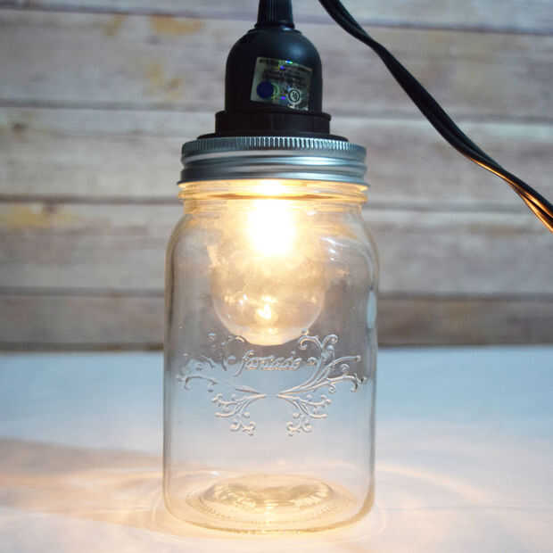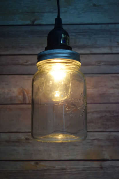 Estamos enamorados de lo simple y hermoso este proyecto luz del colgante del tarro de masón resultada! Usted puede utilizar cualquier estilo de bombilla que te gusta, nos encanta las bombillas de Edison para su encanto vintage!Esta luminaria del tarr