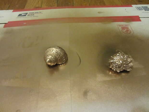 En primer lugar, aerosol pintado en la parte superior de las conchas. Entonces, he hojeado para poder grafitear la parte inferior y dentro de las conchas. Después de eso, yo había inspeccionado las otras partes de la cáscara y tuve que retocar en algunos lugares. Asegúrate de que comprobar la cáscara entera, especialmente si es poroso como la mía.