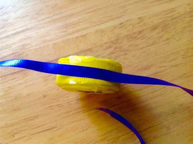 A continuación, obtener su cinta y cinta adhesiva en la parte superior del colgante. Asegúrese de que, sin embargo, en la cinta colgante en el centro de la cinta. Para determinar donde el medio es simplemente Envuelva la cinta alrededor de la tapa y seguir tirando de la cinta hasta que ambos extremos estén en la misma longitud exacta... no uno de los extremos es más corto o más largo que el otro.