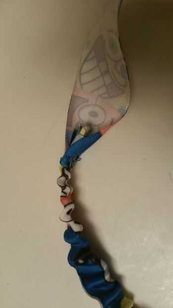 Pasar el elástico y coser luego dow las bandas superiores a los lados.