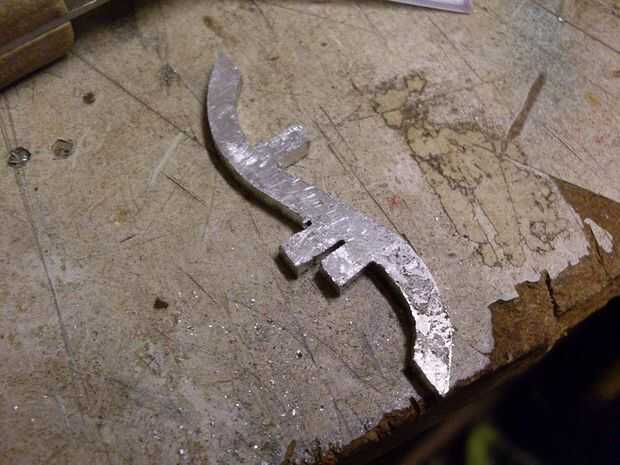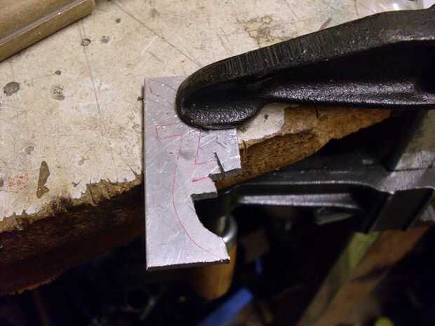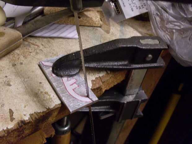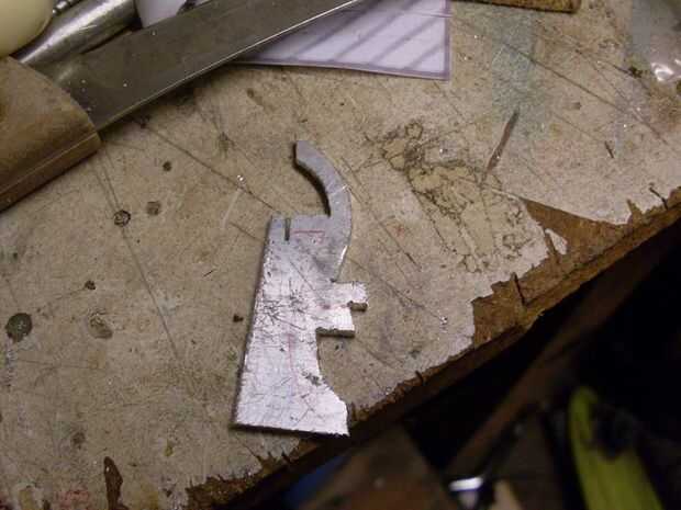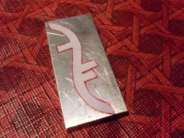 En primer lugar, imprima la forma de "F" y trazar en la pieza de metal con un rotulador o marcador permanente. Abrazadera y empezar a recortar con la Sierra de marquetería. No te preocupes los bordes ásperos, porque les puede presentar más adelante.