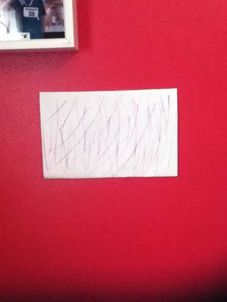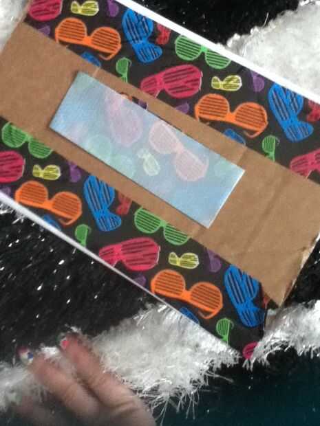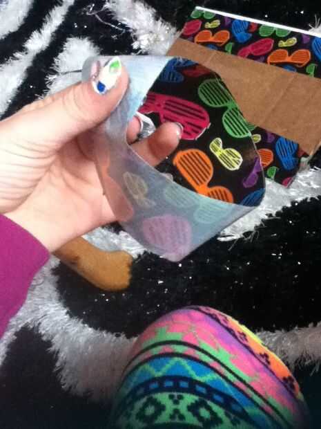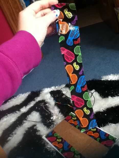 Poner una tira de cinta de pato en la parte posterior del cartón o palo a las paredes