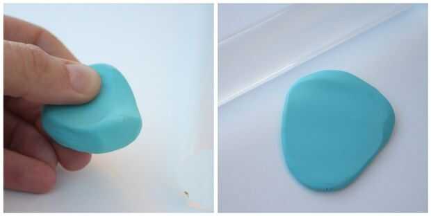 Ablandar y condición de la arcilla con las manos antes de comenzar. Utilizar el rodillo para rodar una pequeña pieza plana. Hacer esto con cada color.