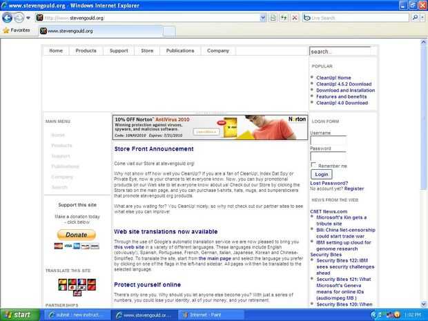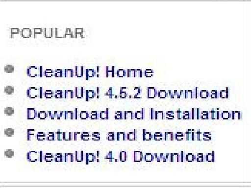 En Internet Explorer, vaya a www.stevengould.org. y en la esquina superior derecha de tu pantalla, verás un cuadro que dice, POPULAR (ver foto más abajo...) Haga clic en "descargar CleanUp! 4.5.2 "