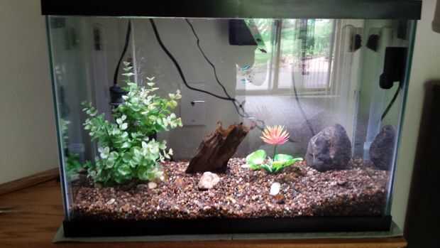 Añadir la cantidad apropiada de su acuario. Asegúrese de usar acondicionador de agua! Cantidades para el acondicionador de agua se indicarán en el envase. En marcha la bomba de aire, filtro y luz y añadir una tapa llena de acondicionador de agua a la caja del filtro. Esto comenzará a las bacterias útiles en los filtros que más claro agua, peces felices y sanos y aumentará la capacidad del filtro para limpiar el agua. Deje que la electrónica durante unos diez días, a continuación, agrega algunos peces resistentes (como las púas). Yo recomendaría Petco para peces porque prometen pescado de reemplazo gratis para los que mueren. (Muertes de peces son comunes. El pescado a veces tiene dificultades para adaptarse a un nuevo entorno.) Si quieres más pescado, esperar un mes o entonces añadir pescado que junto con sus habitantes existentes.