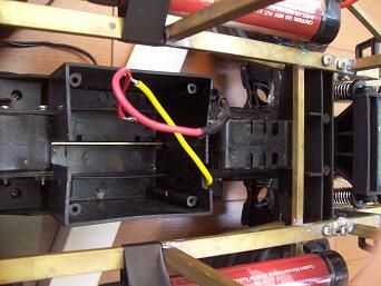 Aquí está una foto del cable amarillo del motor conectado al bloque de terminales. También se puede ver cómo las baterías están conectadas en serie para el control del robot wifi barracuda. En el bloque terminal verde es donde conectamos el servo. El cable rojo está conectado a la tercera 7.2v baterías tierra y tierra de la servo. El cable blanco es cable de señal del servo. La barracuda tiene dos puertos de salida. Cada uno puede configurarse individualmente como una entrada digital o analógica, salida digital o un Rc salida haciendo el Barracuda muy flexible.