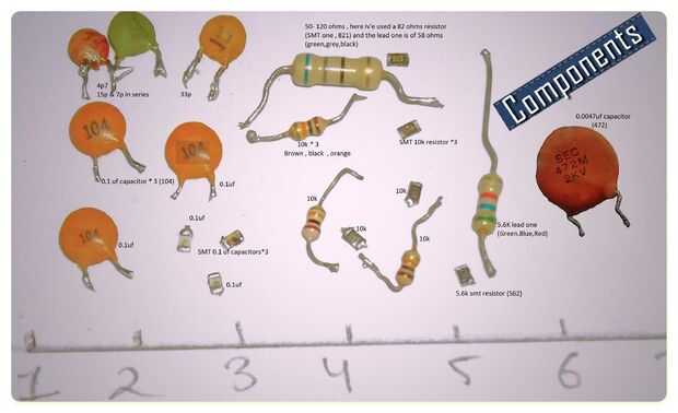 - condensador de cerámica 0.1uf * 3 (código: 104, si estás dispuesto a utilizar un capacitor SMD que necesita probar por un medidor de capacitancia porque generalmente no hay ningún código escrito en un condensador SMD excepto algunos como tengo)