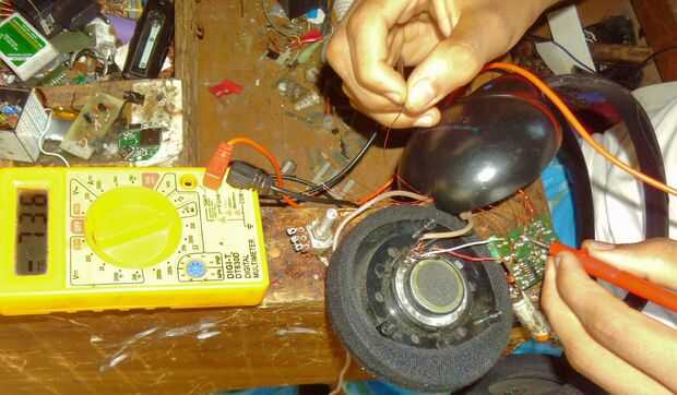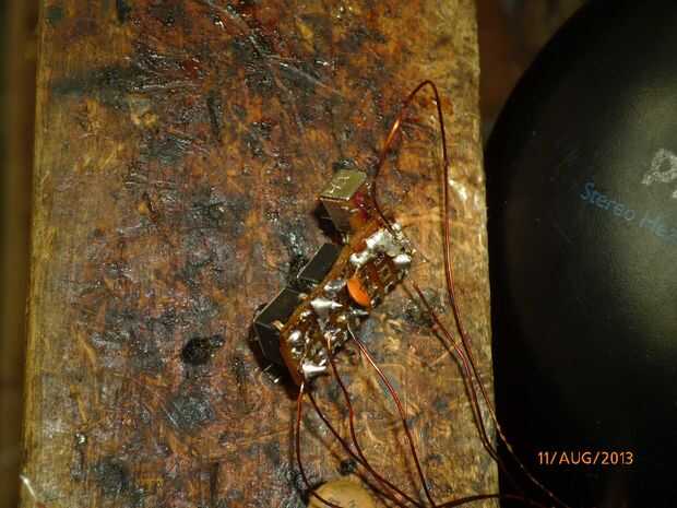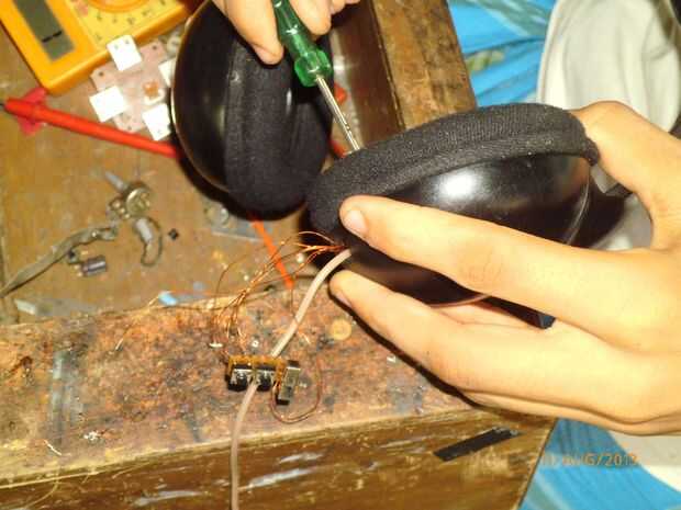 Now you are on the final step. Todo lo que tienes que hacer es instalar el módulo de radio en los auriculares. Primero, agarre unos hilos finos de cobre y cortarlas en trozos. A continuación, abra un lado de los auriculares (Nota: auriculares diferentes tienen diferentes métodos de apertura de la cabina.) donde está conectado el cable y ver si hay algo de espacio en los auriculares o no si es así Hazte un agujero. Ahora verás tres hilos. Tome usted módulo de radio y abre también. Allí se encuentra el conector hembra de 3,5 mm. Ahora cables de soldadura en cables de conector hembra habrá tres (pero puede ocurrir solamente habrá dos conductores que están conectados al circuito.) ahora conectan el cable de entrada de auriculares. Ahora mantenga la batería y el interruptor en serie y pasarlo el orificio para el conector de entrada y luego soldar el interruptor (de modo que el poder puede ser activado o desactivado desde fuera.) pero no la batería. La batería permanece dentro. Ahora gire que la Junta sobre usted verá dos botones no en la parte posterior verás cuatro cables en cada uno de ellos. Ahora soldadura todos los cuatro cuatro conductores con el alambre. Ahora toma dos pulsadores y un interruptor on-off y soldadura en el un prototipo pequeño del tablero y conecte los cuatro conductores que salen del pulsador a la Junta de pequeño botón había hecho antes con mucho cuidado y respectivamente pero antes de soldar desmayar los cables de los auriculares... Revise muy cuidadosamente todas las conexiones. El interruptor en el tablero pequeño de prototipos es el interruptor del regulador. Ahora usted puede también sacar el positivo y el terminal negativo hacia fuera de la batería por lo que puede ser cargada otra vez. Ahora estás listo para usar. Sintonice los auriculares frecuencia de emisor por traer los auriculares cerca de ella y la exploración. Si está utilizando una soldadura de módulo de radio ajustables manualmente todos los cables que salen del condensador variable o inductor y pasarlos través de los auriculares de ajuste. Si el módulo de radio no es bueno se puede poner una antena. Para hacerlo hay dos maneras: primero si tienes una antena preinstalada solo soldar un alambre y poner y antena exterior. En segundo lugar si no se tiene el módulo de radio y antena preinstalada luego de la soldadura de la antena en tierra de la salida de audio de los auriculares porque esta planta se utiliza y una antena.  Aquí tienes. ¡ Disfrute!