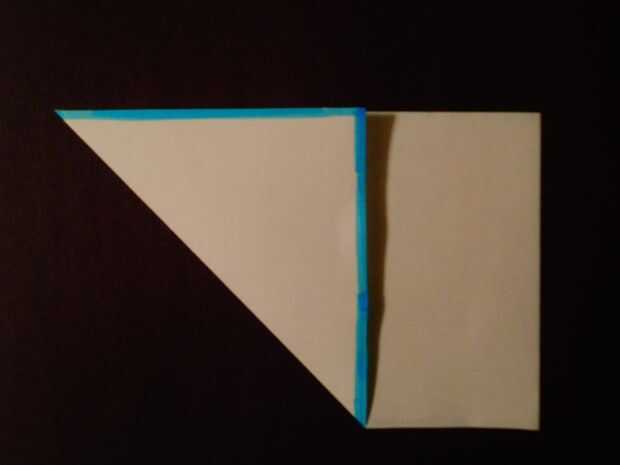 (Para hacer un cuadrado: un cuadrado de un pedazo rectangular de papel usted puede hacer simplemente doblando una esquina hasta forma un triángulo isósceles y recortar el papel sobrante. Ver segunda foto).