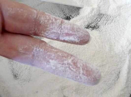 Prueba de cocción (sequedad) tomando un poco entre los dedos. Harina bien seca no se pega juntos.