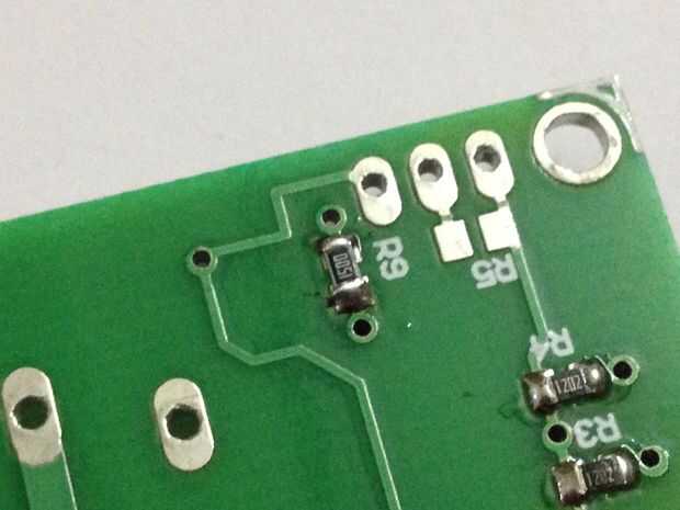 Soldadura de resistencias de 150 Ohm en R6, R9
