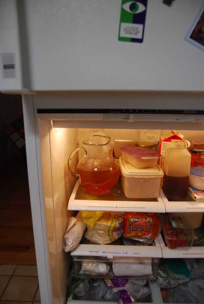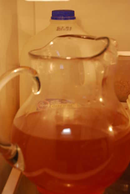 Es probable que necesite ayuda en este paso de la mano. Tome su tamiz y mantenerla sobre la jarra de servir. Vierta el té helado pronto a ser lentamente por el tamiz de la jarra. Deshágase de todo lo que fue capturado, no nos gusta la basura! Una vez hecho esto, refrigera tu té helado.