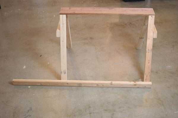 Cortar dos tablas para ser la longitud de la tabla (otra vez, 3 pies de largo en este caso). Incluso no