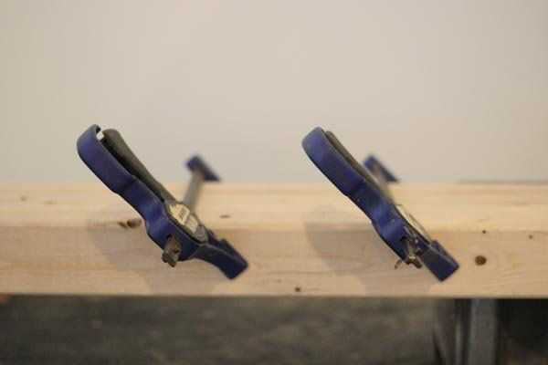 Después de haber cortado tus piezas de cuatro patas, sujetarlos con unas pinzas de madera. Somos