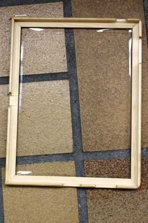 5. cinta adhesiva la parte inferior del marco para evitar que cualquier barniz para llegar allí. La parte inferior se pega en el "libro"-cubierta, por lo que tiene que estar limpio. He utilizado barniz con base de aceite natural, por lo que esto habría causado problemas para el encolado. Si utilizas algo como pintura del coche, puede ser aceptable para pintar también la parte inferior del marco.