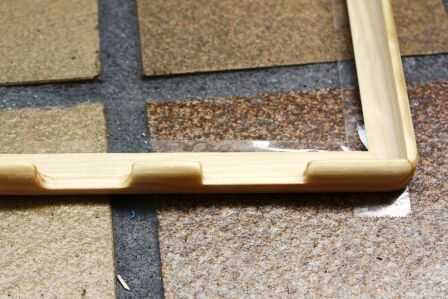 2. Pegue las piezas del marco con pegamento de madera. Usé el perfil en forma de L y una banda de goma para soporte mientras se secaba el pegamento (ver imágenes adicionales). Espere hasta que el pegamento ha tratado y el marco es lo suficientemente estable como para su posterior procesamiento. Esperé durante aproximadamente 1 hora antes de continuar. El pegamento no alcanza su resistencia final en aquel momento, pero fue suficiente para hacer los cortes.