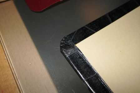 5. Estire el revestimiento sobrante en los bordes de la cubierta de libro pegado al interior de la cubierta del libro. Para más información, consulte las imágenes de detalle.
