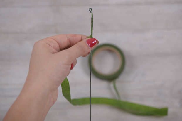 Luego, enrolle los extremos con unos alicates y envuelva la longitud del cable de cinta floral para asegurarse de que es cómodo y seguro para cuando su hijo lo lleva. Regresaremos a los lazos más adelante cuando añadimos una cinta.