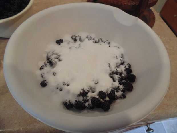 Tomar 4 tazas de bayas y vierta 2 tazas de azúcar sobre ellas.