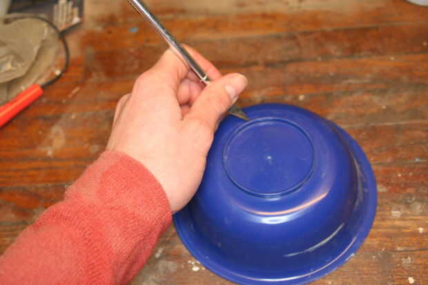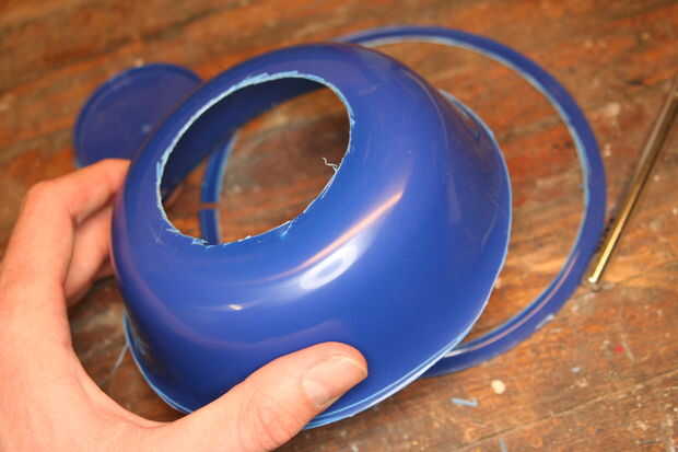 Que tenemos que hacer algunas modificaciones simples a la taza. Esto dependerá del tamaño de su tazón de fuente y cámara, pero mide el tamaño de la lente y cortar un agujero en el centro del tazón de fuente que la lente podría caber a través de. Yo también corte el labio ancho del recipiente porque es innecesario.