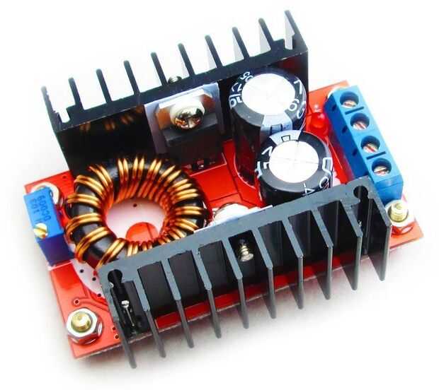 Este conversor puede convertir de gama de entrada 10-32V a y rango de salida de 35-60V. Esta con una potencia máxima de 120Watts, se recomienda para añadir enfriamiento cuando superior a 80W, pero como necesitamos sólo 15W, realmente no debería ser un problema.