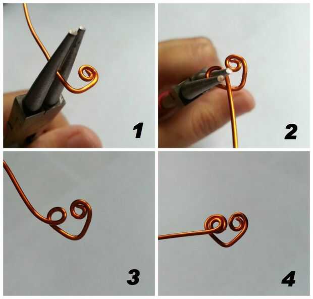 Doblar el alambre por debajo de la espiral para formar la parte inferior del corazón (véase el cuadro 3 de este paso),