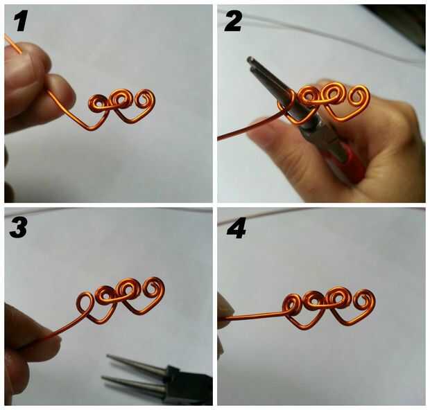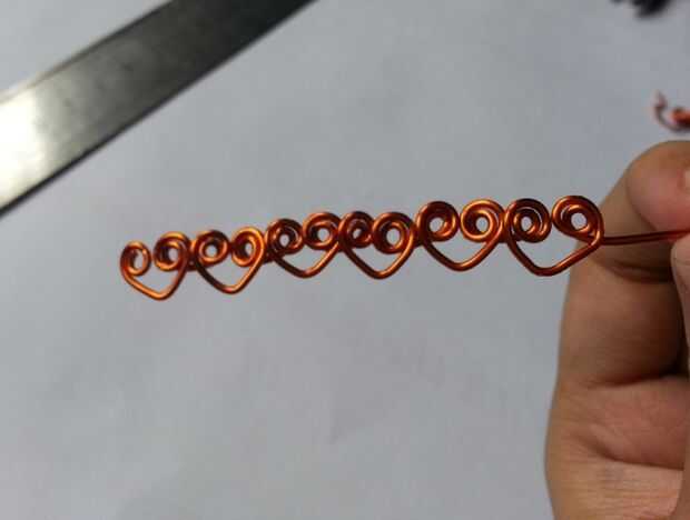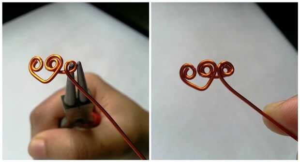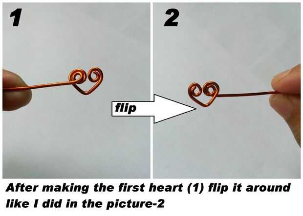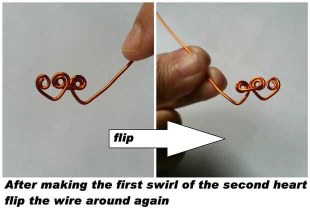 Antes de hacer el segundo remolino del segundo corazón que tienes que voltear todo el alambre otra vez,