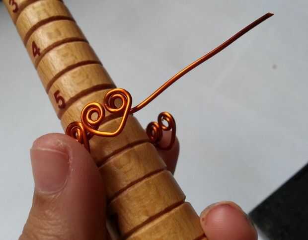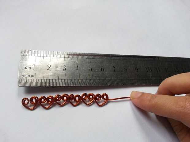 Envuelva la cadena corazón alrededor del mandril e Inserte el alambre extra en el primer lazo del primer corazón,
