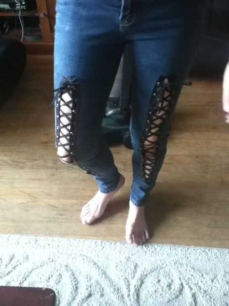 mi hija quería un par de jeans que en ninguna manera se va a gastar esa cantidad de dinero en.  Así que en vez que decidimos hacerlas y compartir nuestro trabajo!