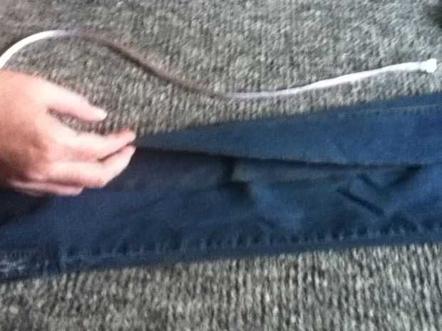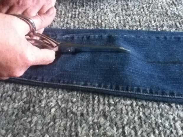Cuidadosamente cortadas a lo largo de la línea teniendo cuidado de no cortar la parte trasera de los pantalones vaqueros.